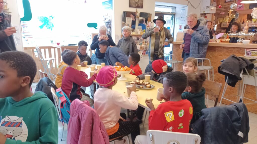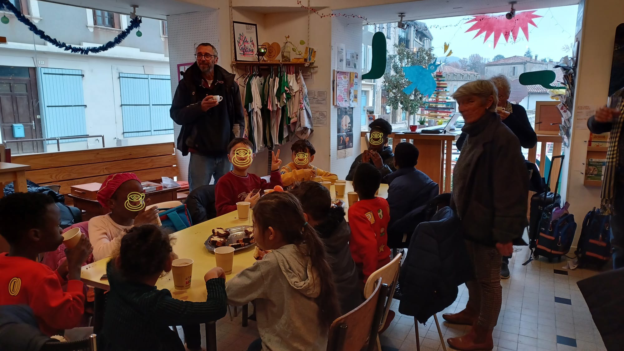 Bien évidemment, le moment le plus apprécié, par les enfants comme par les adultes, est sans aucun doute le goûter qui suit la séance de travail. Un goûter agrémenté, cet hiver, de bons chocolats chauds offerts par les visiteurs de La Cafetière, grâce au dispositif solidaire du « chocolat suspendu ».