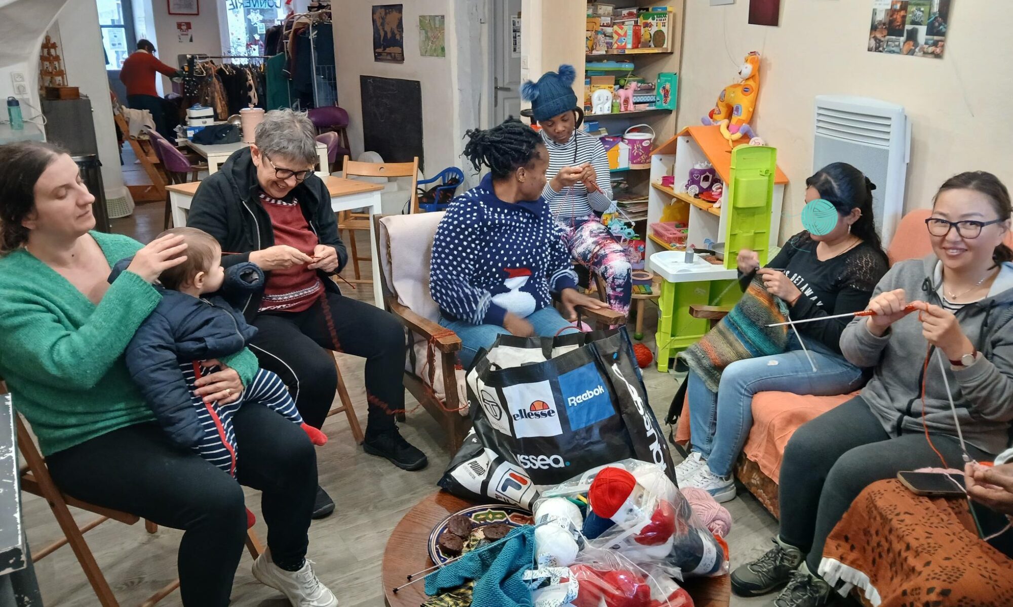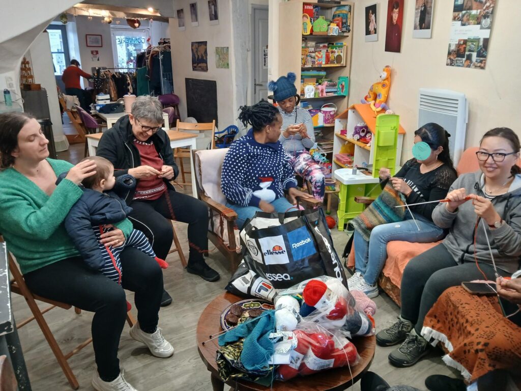 Puis, est-ce l’arrivée du froid, le besoin d’occuper ses mains ? Avec l’hiver a surgi une irrépressible envie d’apprendre le tricot ! Ça tombe bien, il y a quelques expertes parmi les bénévoles d’Alter’Ego, et La Cafetière peut nous fournir un stock de laine et d’aiguilles.