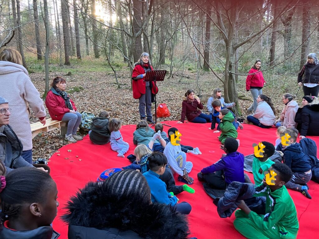 Après une petite balade pour identifier les principales essences d’arbres (sapins, chênes, bouleaux, charmes….), c’est le moment d’une pause douillette pour le temps du conte, avant un bon goûter – boissons chaudes, gaufres et cakes – en bordure de forêt.